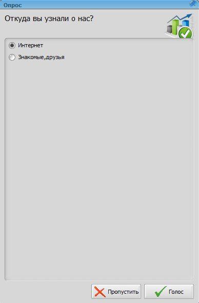 Жмём кнопку "Принять". Если были настроены опросы, то можно увидеть опросы для клиента.
